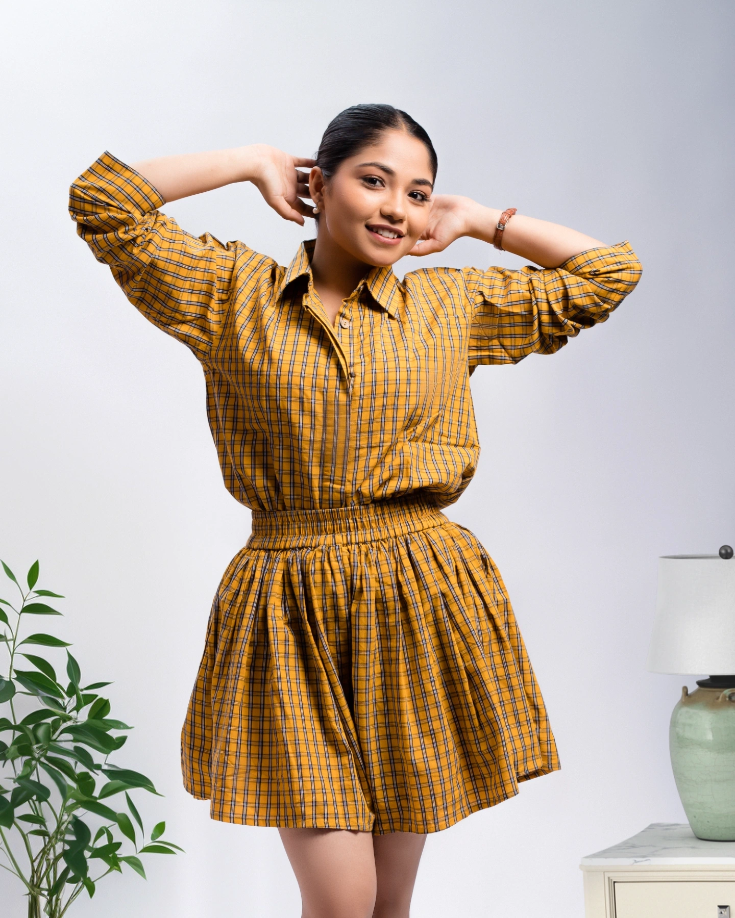 Versatile Style: Includes a matching shirt and skirt-style shorts set which can be styled for meetings, outings or even a date night